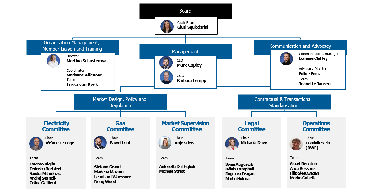 The Energy Traders Europe Board is made up of elected representatives from our Member Companies and co-opted members of the Secretariat Team and steers all of our work. It is currently chaired by Giusi Squicciarini, Shell.